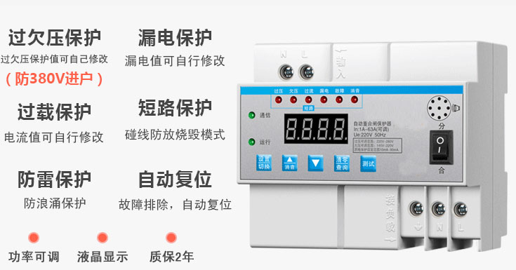 1.短路保護:自動重合閘漏電保護器在電流大于額定電流的3倍時,自動重合閘漏電保護器在0.1秒內(nèi)斷開,保證設備的安全性。