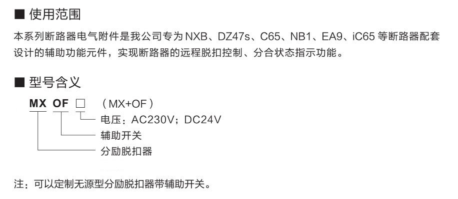 NXB無源型分勵(lì)+輔助 MX+OF(AC230V/DC24V)